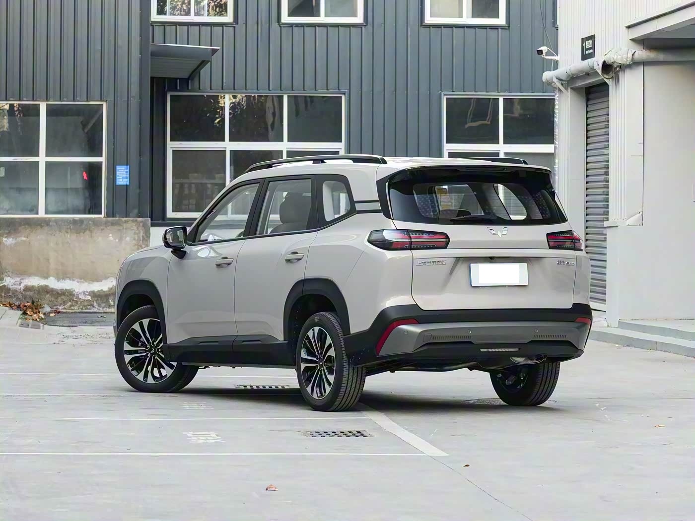 再来看车身侧面部分,车身侧面是星光560的亮点所在,4745mm的车长与2810mm轴距形成修长比例,黑色行李架、宽体轮眉及侧裙设计延续硬派风格。 18英寸双色轮毂虽尺寸适中,但搭配高挑腰线,营造出蓄势待发的动感。D柱采用粗壮设计并辅以双色拼接,增强视觉稳定性。车门保留传统拉手,提升日常便利性,而1755mm的车高确保了头部空间充裕。 整体轮廓流畅,兼顾城市通勤的灵活性与轻度越野的野性气质。